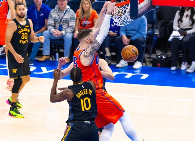 第二,一旦库里和巴特勒这样的核心回归,一些在他们缺阵时手感火热的角色球员,又得不到足够出手权维持手感,典型的例子就是穆迪和斯潘塞,导致整个勇士,进攻端缺乏持续和稳定性。勇士本赛季防守确实不错,场均控制失分113.4分联盟第六,防守效率113.2联盟第八,但是他们场均得分和进攻效率,都在联盟22名开外!之前我们也分析了,库里伤病不可避免,是因为球队常规赛对他的透支使用,压力过大加上年龄问题。而二当家巴特勒,本就不是一位具备常规赛稳定出勤且带队保底的超巨,和库里有些功能重叠,但导致球队没下限。